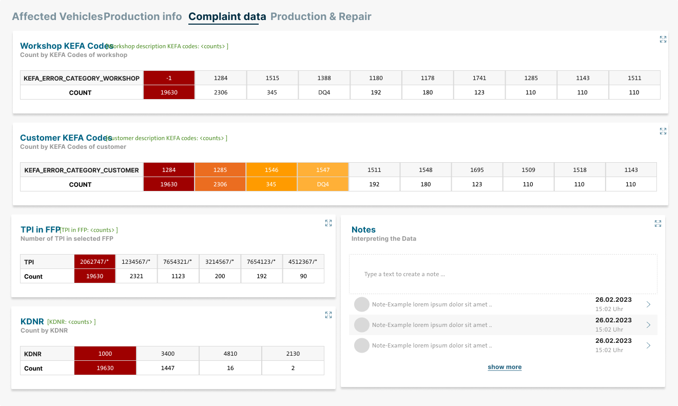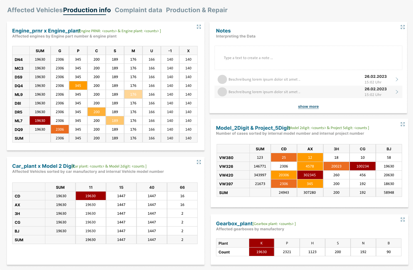 Die Folge war ein mühsamer und fehleranfälliger Arbeitsablauf. Es gab keine klare Struktur entlang der Aufgaben von Tagging, Diagnose und Reporting. Rollen und Schritte im Prozess waren im Dashboard nicht abgebildet, obwohl sie in der Organisation längst etabliert waren.